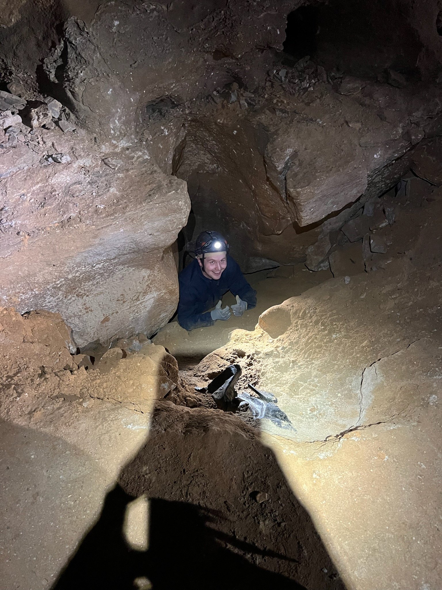 I’ve never experienced claustrophobia before, but there’s also no way to predict whether you’re claustrophobic in this specific circumstance until you’re on your hands and knees deep underground with only your headlamp for light. Another thing you might not know about yourself until you’re sliding across cave floors is whether you’re a fast crawler. Max learned he’s not a fan of spelunking. I discovered I can crawl fast as f*ck.