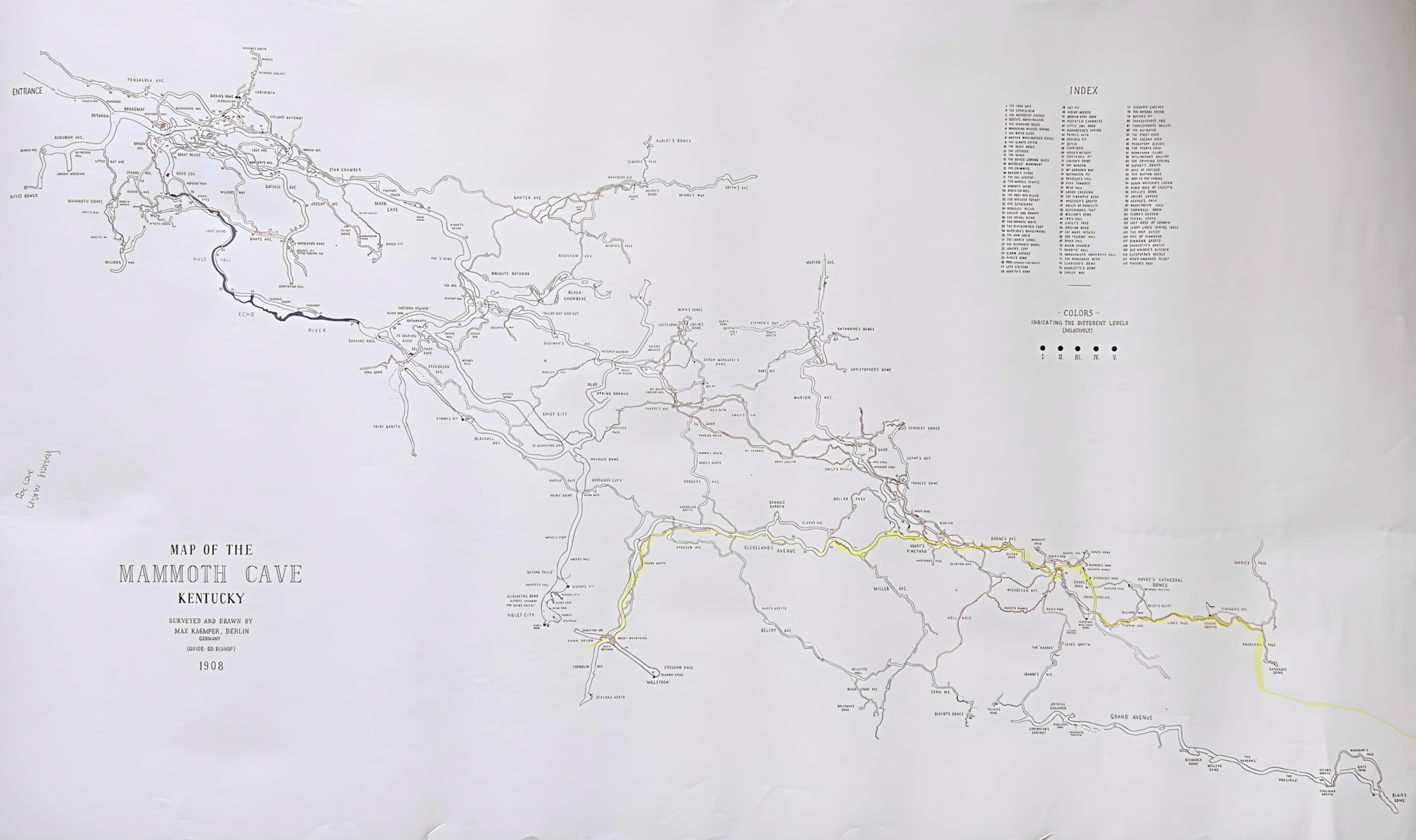 The yellow highlighted area represents the routes we took in the 6-hour Wild Cave Tour.